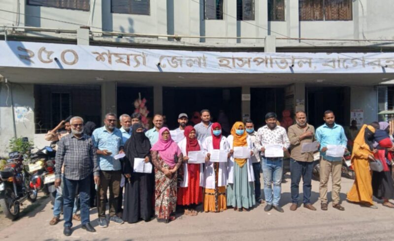 বুধবার (২০ নভেম্বর) সকাল ১০টায় বাগেরহাট ২৫০ শয্যা হাসপাতালের সামনে ছয় দফা দাবি আদায়ের লক্ষ্যে সংগঠনের জেলা শাখার উদ্যোগে ঘন্টা ব্যাপী শান্তিপূর্ণ মানববন্ধন কর্মসূচি পালিত হয়েছে।