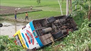 নিয়ন্ত্রণ হারিয়ে বাস উল্টে গেল: আহত ২০ জন