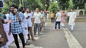 ভোটার লাইনে প্রার্থীদের প্রচারণা, বিরক্ততিতে শিক্ষার্থীরা