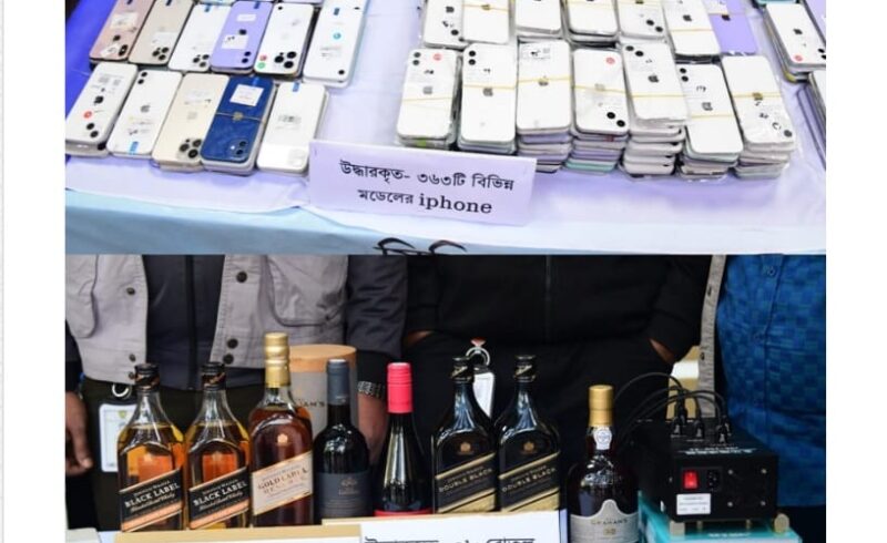 বিভিন্ন মডেলের ৩৬৩টি আইফোন, আইফোনের খুচরা যন্ত্রাংশ, বিদেশি মদ ও নগদ অর্থসহ তিন চাইনিজ নাগরিককে গ্রেফতার করেছে ঢাকা মহানগর গোয়েন্দা পুলিশ