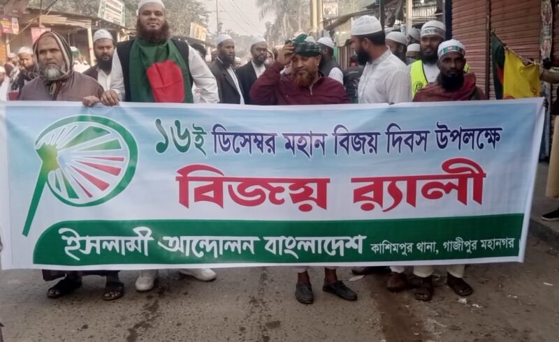 কাশিমপুরে ইসলামী আন্দোলন বাংলাদেশের উদ্যোগে মহান বিজয় দিবস উপলক্ষে বিজয় র্যালি অনুষ্ঠিত