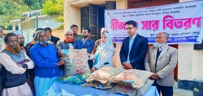 সুন্দরগঞ্জে কৃষি প্রণোদনার আওতায় বিনামূল্যে বীজ ও সার বিতরণ