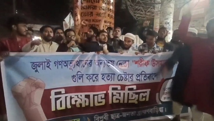 উসমান হাদির ওপর গুলির প্রতিবাদে ব্রাহ্মণবাড়িয়ায় বিক্ষোভ মিছিল