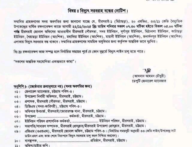 চট্টগ্রামের মীরসরাই পল্লী বিদ্যুৎ সমিতি কর্তৃপক্ষের হাস্যরসাত্মক বিজ্ঞপ্তি!